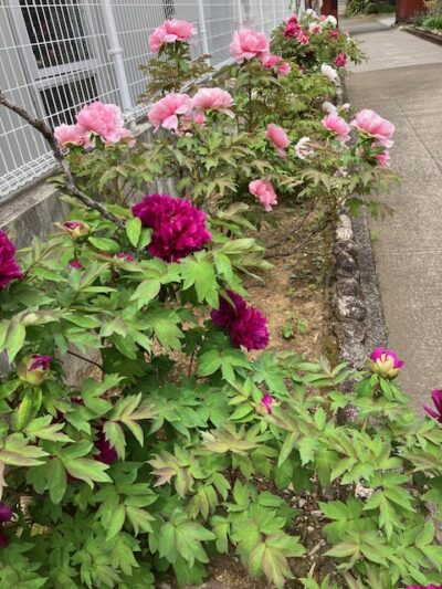 ピンク色、白色、紫色の牡丹が咲き始めましたので、ちょっとお邪魔して写真を撮らせて頂きました。